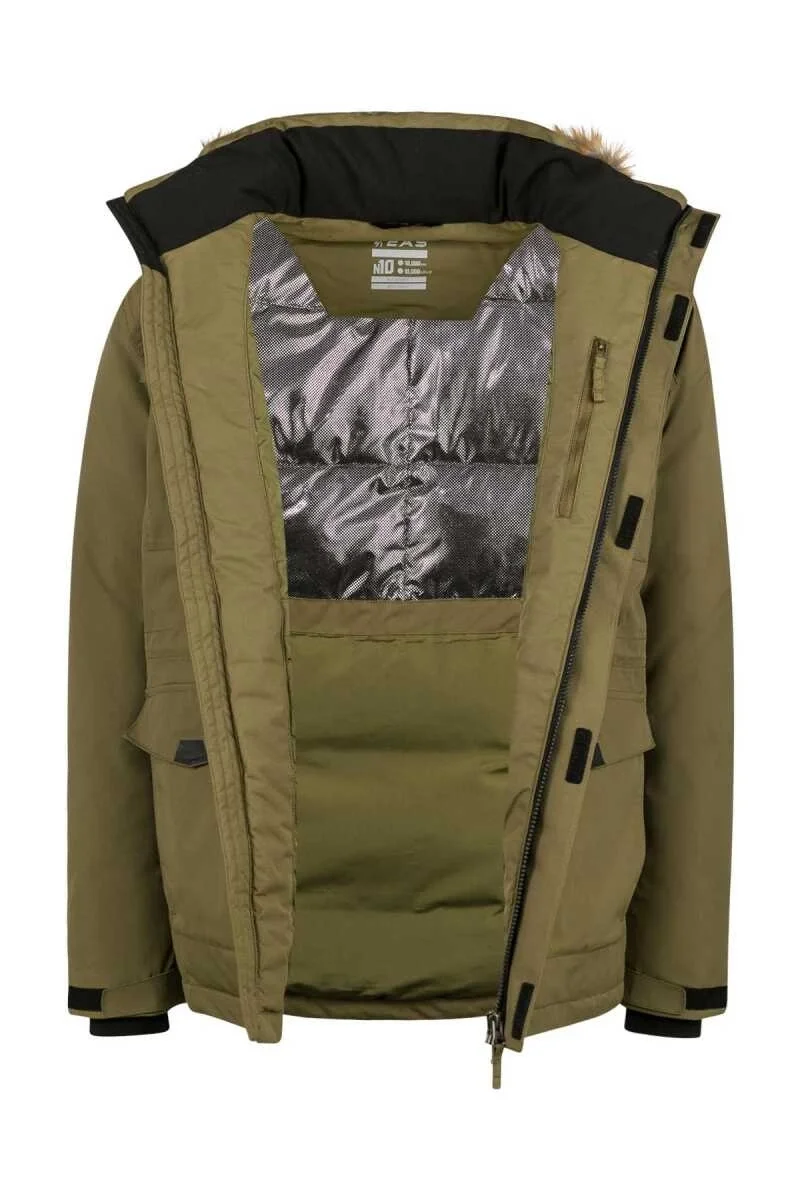 Erkek Down Ceket Mont ÖZELLİKLER • Dış mekân aktivitesi için konforlu sıcaklık ve kuruluk için su geçirmeye ve rüzgara karşı dayanıklı kumaştan tasarlanmıştır. • Çıkarılabilir ve ayarlanabilir kapüşon, • Termal astar sayesinde vücuttaki ısıyı sabit tutmaktadır. • Boyun ve çene korumalı cırtlı ve fermuar kapamalı orta ön detay, • Tüm dikişlerde su girişini engelleyen kaynak bantları bulunmaktadır • Suya Dayanıklılık Oranı: 10.000 mm • Nefes Alabilirlik Oranı : 10.000 g/m • Dolgu Yalıtım: 550 İÇERİK %100 Polyamid