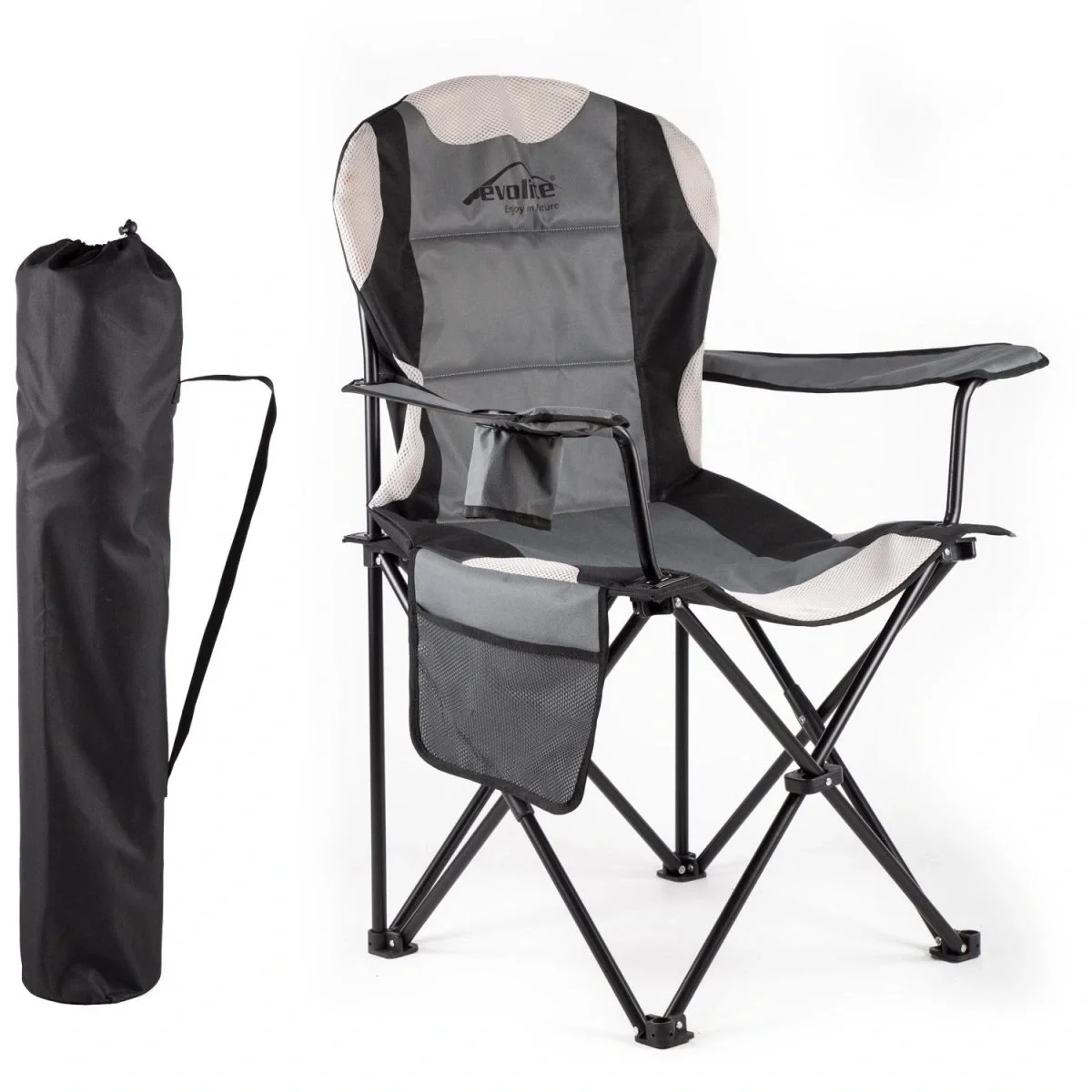 Evolite Camping Katlanır Kamp Sandalyesi Yüksek Kalite ve Yüksek Dirençli Kamp Sandalyesi Su geçirmez 600/D Oxford PVC Kumaştan üretilmiştir. Omuz Askılı 600/D Oxford Kumaş, Taşıma çantası ile birlikte gelmektedir. 16mm Çapında x 0.9mm. et kalınlığında yüksek direnç sağlayan iskelet metal ayak sistemi Ebat : 80 x 80 x 50 cm Sandalyenin yüksekliği 92cm Oturma alanı 53cmx53cm Düz zeminde 130 Kg ye kadar dayanıklıdır. Katlanabilir, kolayca çantasında taşınabilir. Kolçakta bardak tutucu özel bardaklık Paslanmaya ve darbeye karşı dayanıklı Elektrostatik Mat Siyah Boya Kapalı paket ölçüsü 89 x 15 x 19 cm Bagajda yer kaplamaz.
